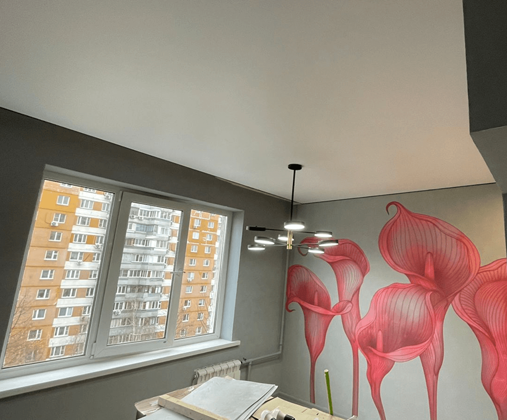 • Широкий выбор дизайна. Заказать натяжной потолок можно разного цвета, фактуры или с фотопечатью, монтируем многоуровневые конструкции любой сложности