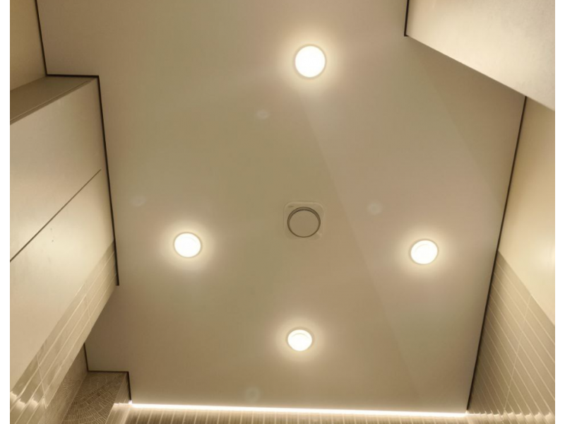 ЭКОпленка производится без добавления мела, который делает полотно более хрупким. Она очень прочная и износостойкая - не порвется, не вылетит из гарпуна и не позволит светильникам рухнуть на головы жильцов.